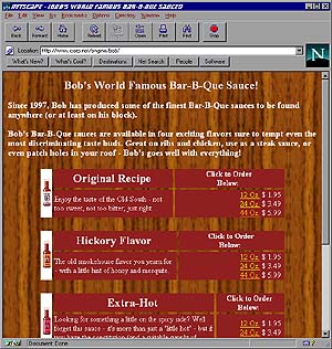 In the area of HTML creativity, we opted to use TABLES to arrange the product information. The newer browsers support the BGCOLOR="xxxxxx" command inside of a row or column definition, so we can make the background of each cell a different color - it's a great way for calling attention to text.